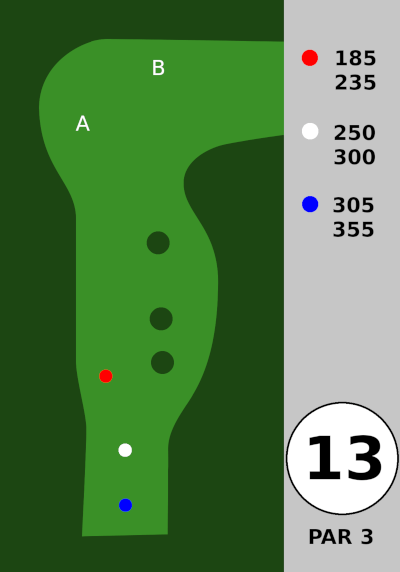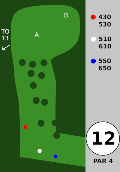 I remeasured the distances. Should be more accurate now. Hole 12 (white and blue) was WAY off before.