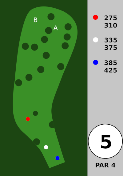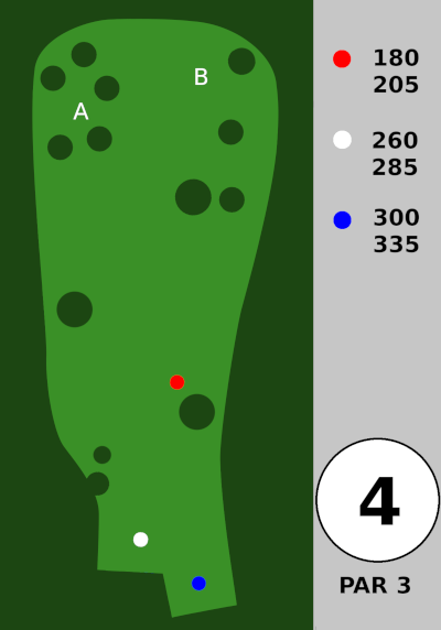 From the end of the trees, it’s 120 ft to the A basket and about 200 ft to the B basket (and maybe longer from the far left side).